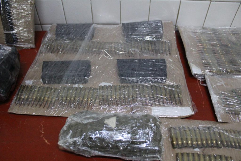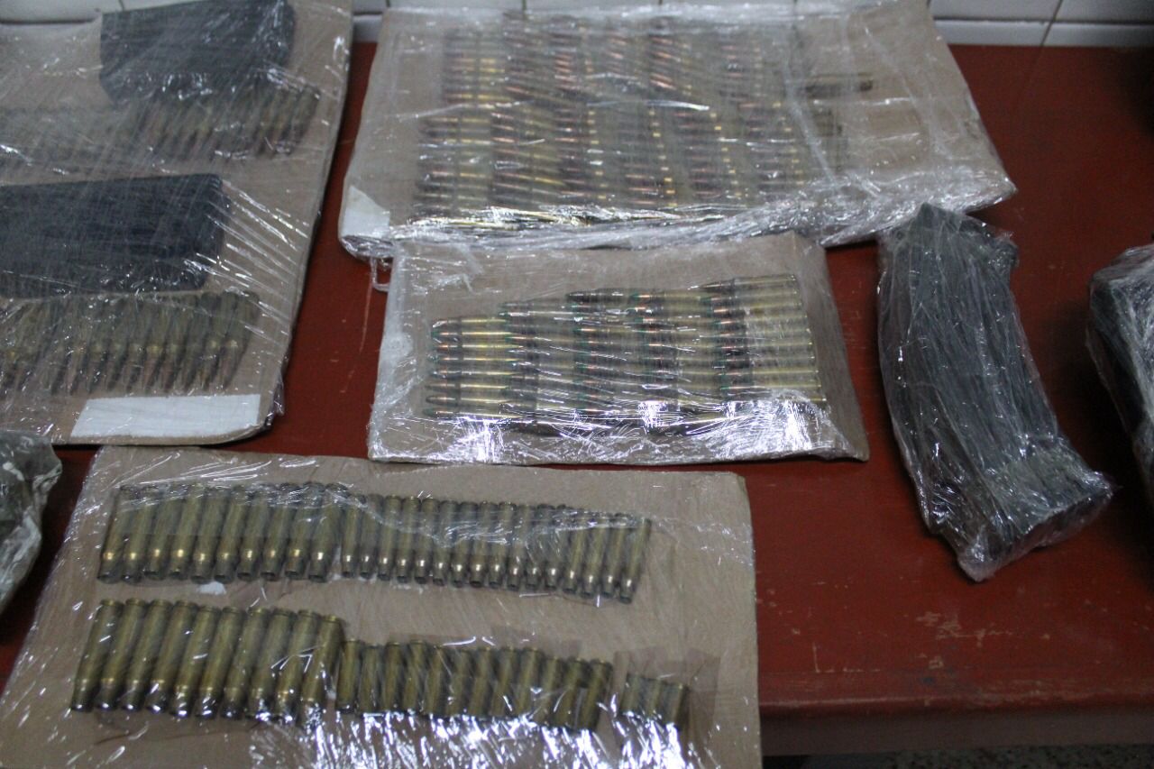 En dicho vehículo se aseguraron 11 uniformes tácticos color verde, con estampado de camuflaje, seis cargadores, 272 cartuchos, 15 de ellos percutidos, tres tablas de madera, 400 anilletas, un cargador, chaleco balístico, dos musleras, tres porta cargadores, una fijalla con funda, un chaleco naranja, así como una perchera para cargadores y una caja de cartuchos vacía.