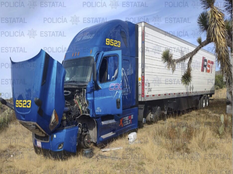 El tractocamión estaba acoplado a una caja seca Grant Dane, modelo 2018, la cual se encontró abierta y vacía. Dicho automotor fue robado con violencia la madrugada del 17 de noviembre del presente año en la comunidad de Franco, Villa de Arriaga.