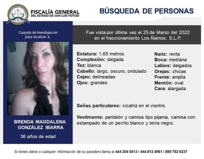 Los reportes de búsqueda emitidos por la Fiscalía General del Estado de San Luis Potosí siguen vigentes para tratar de localizarlas, y por lo que se hace un llamado a toda la ciudadanía para que puedan proporcionar información de las víctimas si llegaran a tener algún dato de su paradero.