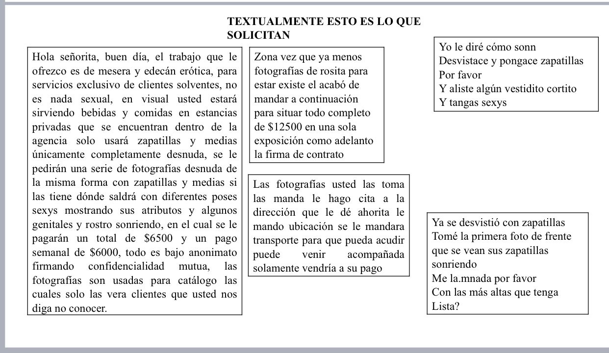 Previamente solicitan fotografías de índole sexual que presuntamente son usadas para catálogo, las cuales son para los clientes.