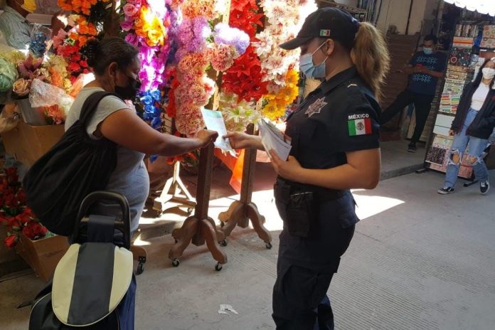 En el marco de las acciones realizadas con motivo del operativo “Fieles Difuntos”, policías Estatales realizan patrullajes de seguridad y vigilancia, por la zona Centro de Rioverde, en donde continúan con las medidas preventivas ante esta temporada, exhortando a locatarios de este espacio y ciudadanos a cuidar de sus pertenencias, reportar en seguida cualquier hecho sospechoso y continuar con las medidas de prevención para evitar delitos como el robo de vehículos, a casa habitación y la prevención del robo a comercio.