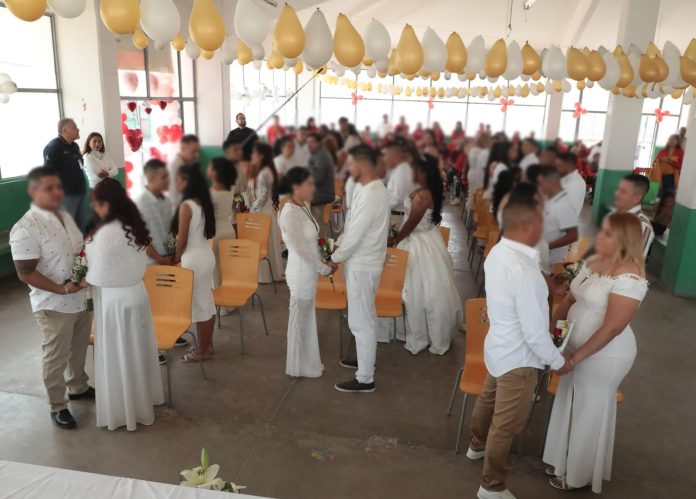 En el marco del Día del Amor y la Amistad y con el propósito de fortalecer la vinculación familiar y fomentar los lazos de unión en los centros de reinserción social de San Luis Potosí, este día se realizó una ceremonia de enlace nupcial por lo civil de 26 parejas en el Centro de Reinserción Social de La Pila.