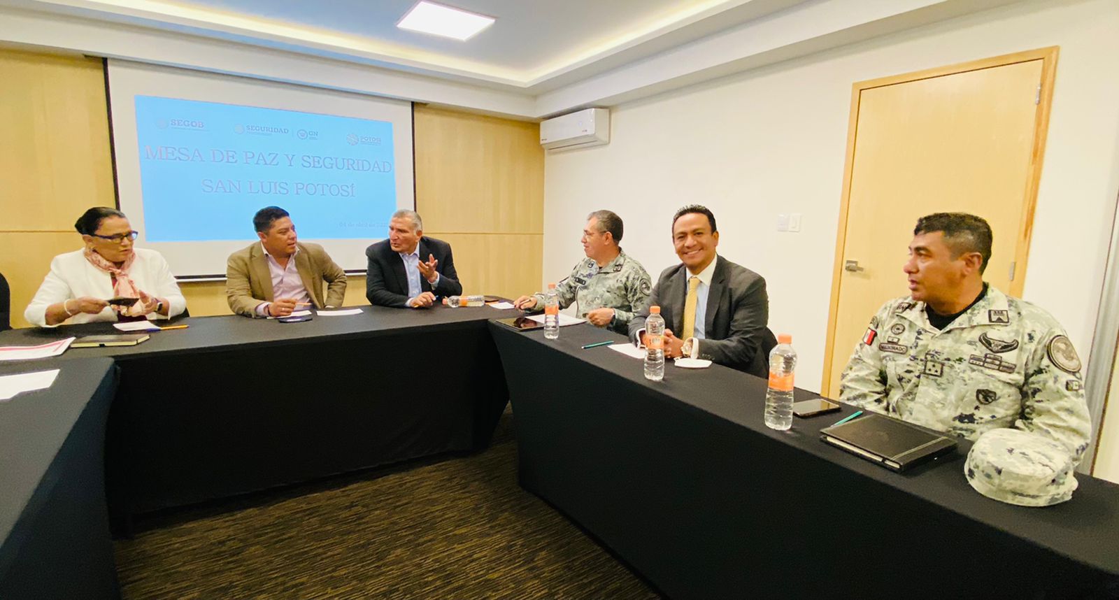 Durante la Mesa de Seguridad, efectuada este lunes en Palacio de Gobierno entre el Jefe del Ejecutivo y Rosa Icela Rodríguez Velázquez, Secretaria de Seguridad y Protección Ciudadana; Adán Augusto López Hernández, Secretario de Gobernación y el comandante de la Guardia Nacional, Luis Rodríguez Bucio, los funcionarios federales reconocieron el esfuerzo del Gobierno potosino para devolver la paz y la tranquilidad a las familias potosinas a través de la estrategia integral de seguridad que se realiza en San Luis Potosí, como la creación de la Guardia Civil Estatal, los operativos de disuasión y de combate frontal a grupos delictivos y las acciones de bienestar social, cultural, educativo, deportivo y de salud en beneficio de la niñez y juventud que complementan dicha estrategia.